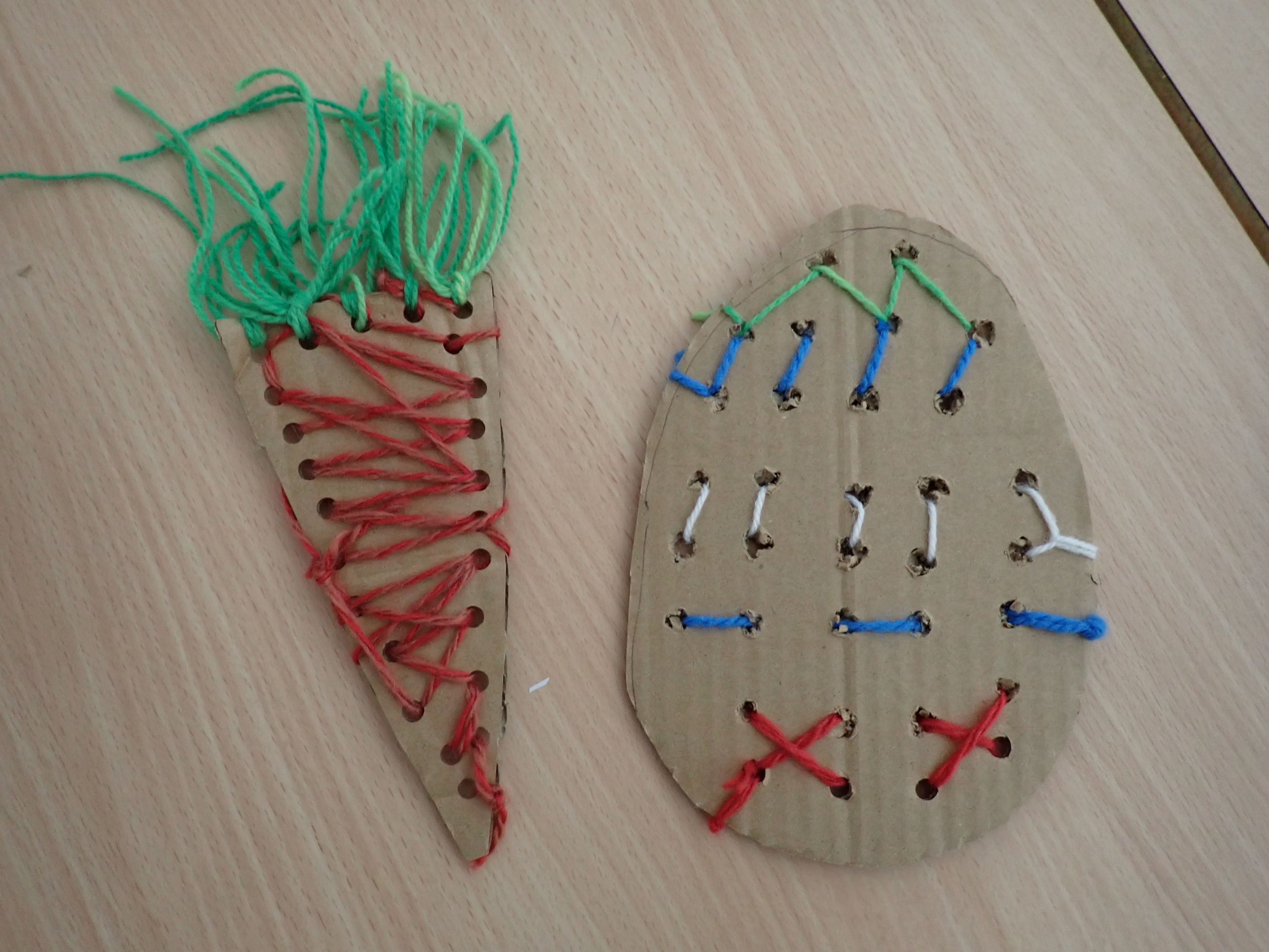 Neugierig betrachteten die Kinder ein paar Bastelmöglichkeiten. Ein Osterei gestalten und eine Möhre “fädeln” waren die Favoriten. Mit viel Geduld und Ausdauer machten sich die Kinder ans Werk. Manche gaben nach kurzer Zeit wieder auf, weil es ihnen zu anstrengend war. Bei anderen reichte die Ausdauer bis zum Schluss.