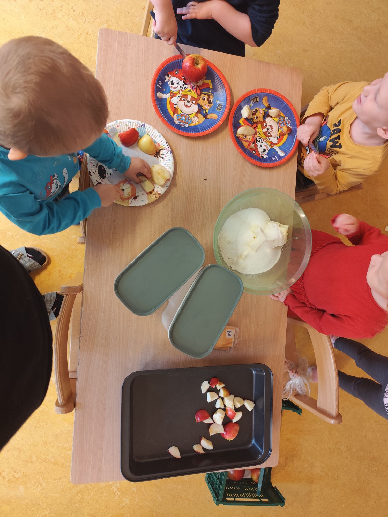Noel hat uns heute viele frische Äpfel mitgebracht,daraus zaubern wir sofort einen leckeren Apfelcrumble und lassen ihn uns mit Vanillesauce gut schmecken . Vielen Dank für den schönen Wochenstart.