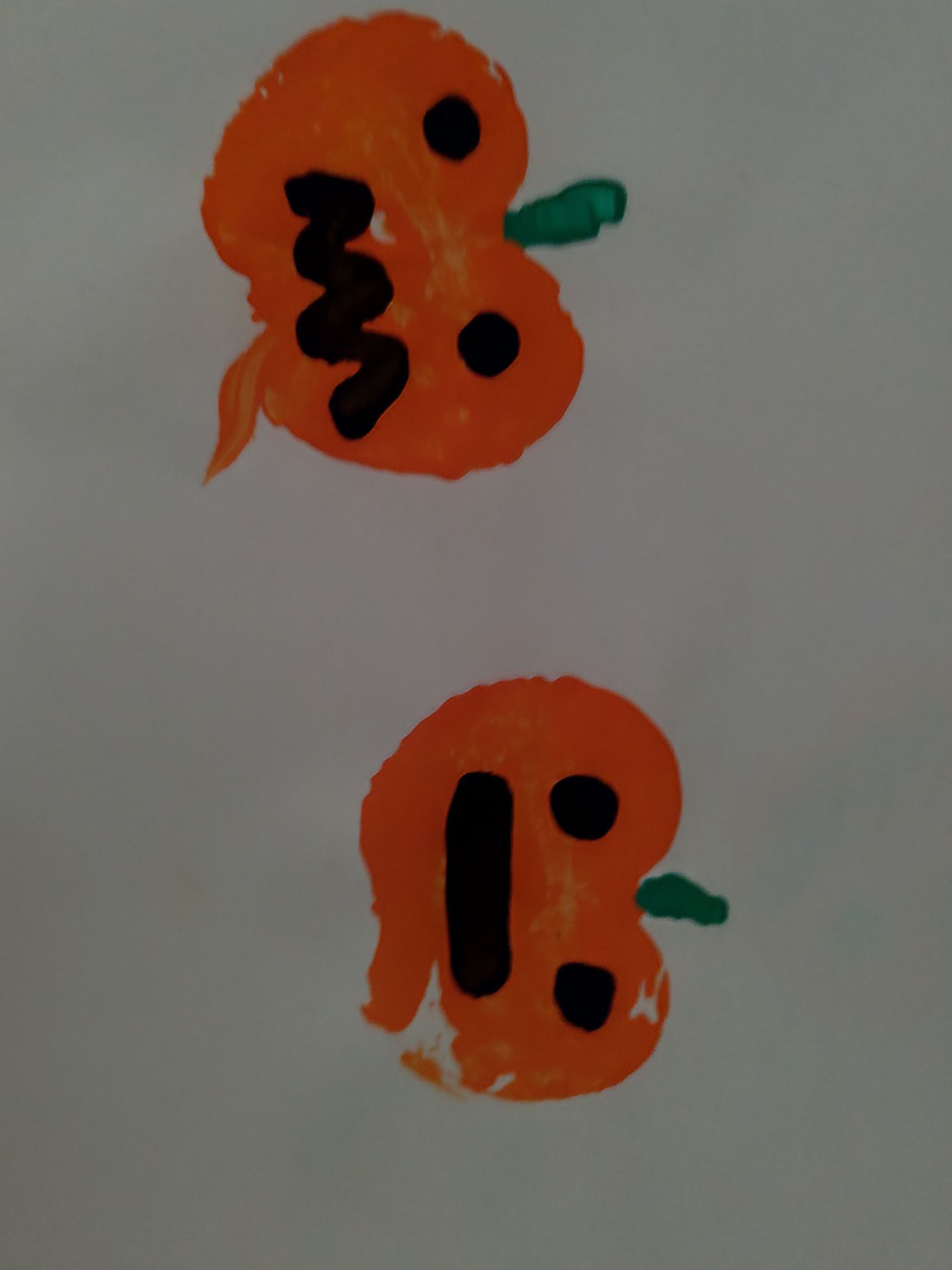 Aus unseren gedruckten Äpfeln entstehen heute kleine Kürbisse ….bald ist Halloween.