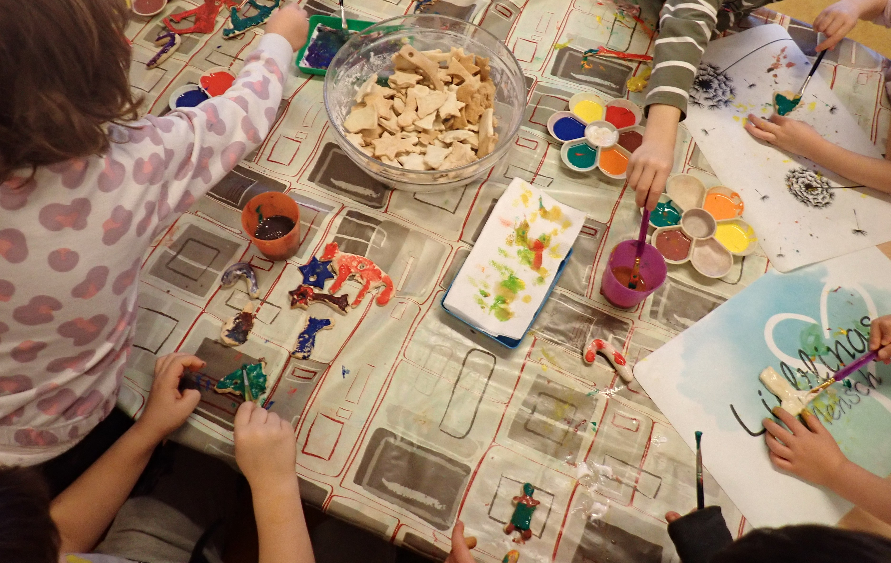 Heute malten wir ihn mit Farbe an. Dem Ideenreichtum der Kinder wurde dabei keine Grenzen gesetzt. Manche Kinder orientierten sich an der Vorbildern aus der Natur. Andere wählten ihre Lieblingsfarben zum Anmalen der Salzteig-Plätzchen.