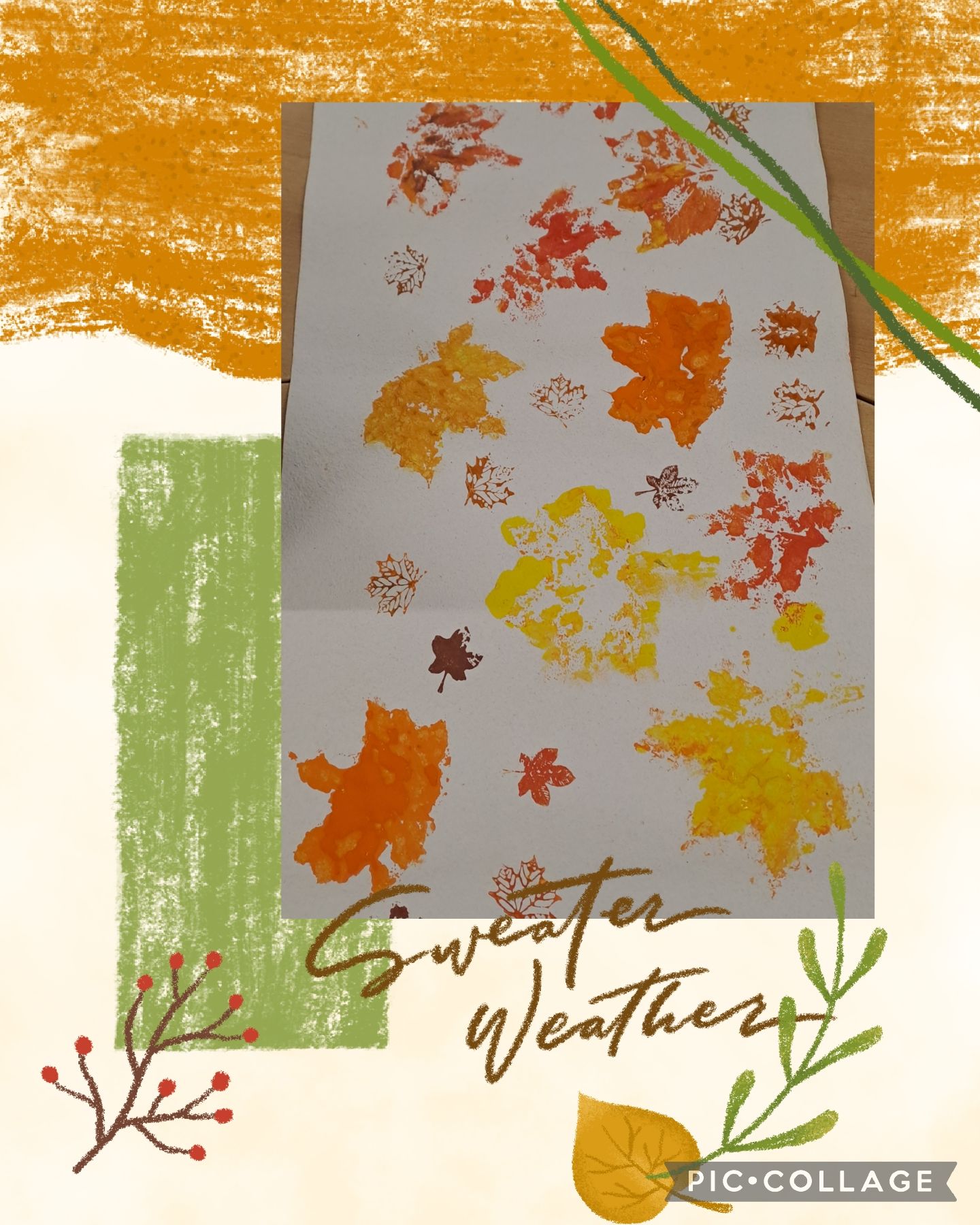 In den letzten Tagen haben wir fleißig Herbstblätter gesammelt und heute daraus ein schönes Kunstwerk gestaltet.