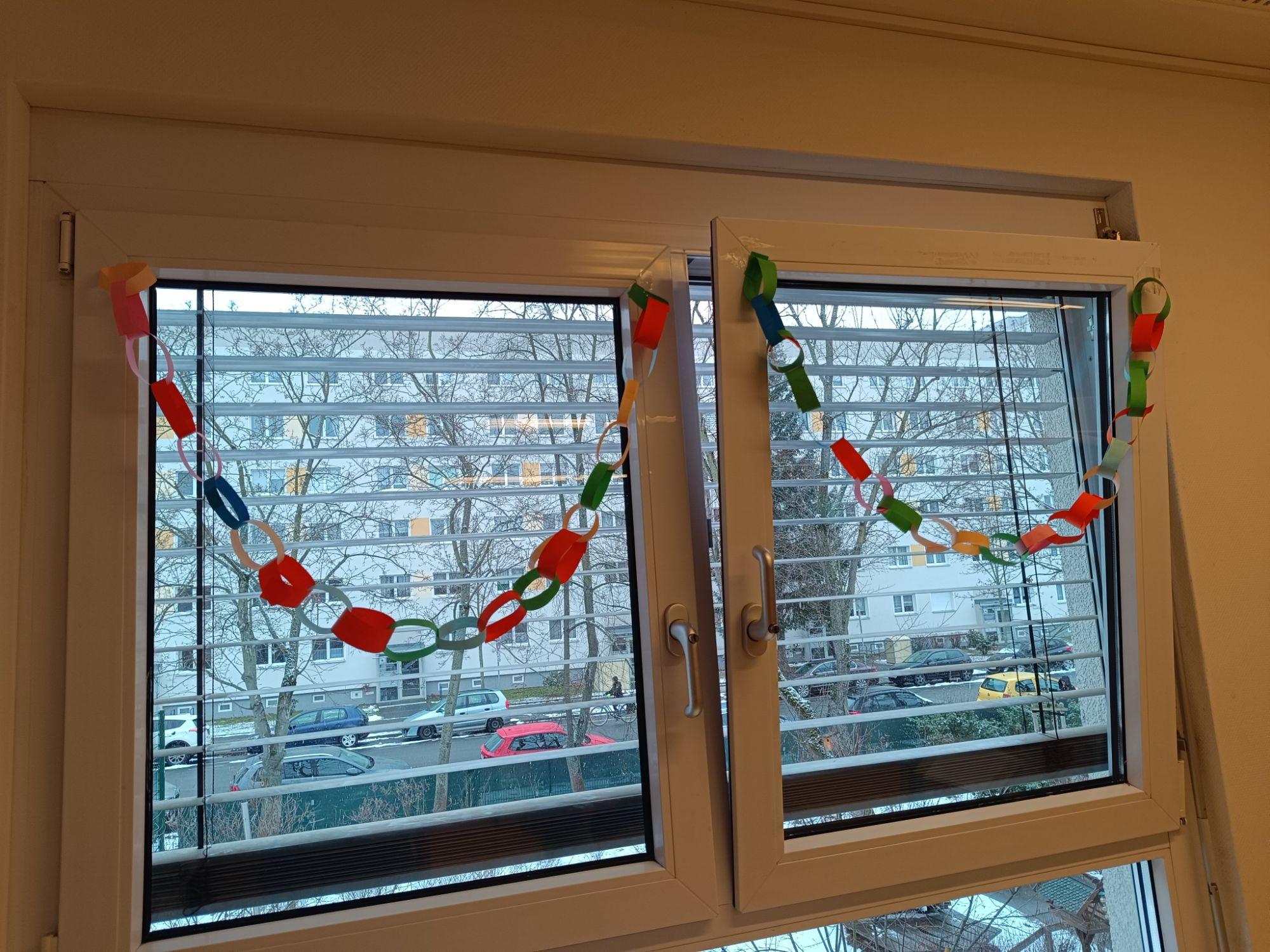 Heute haben wir im Gruppenraum mit den Vorbereitungen für faschingsschmuck begonnen. Die Kinder bastelten bunte Ringketten aus Papier.