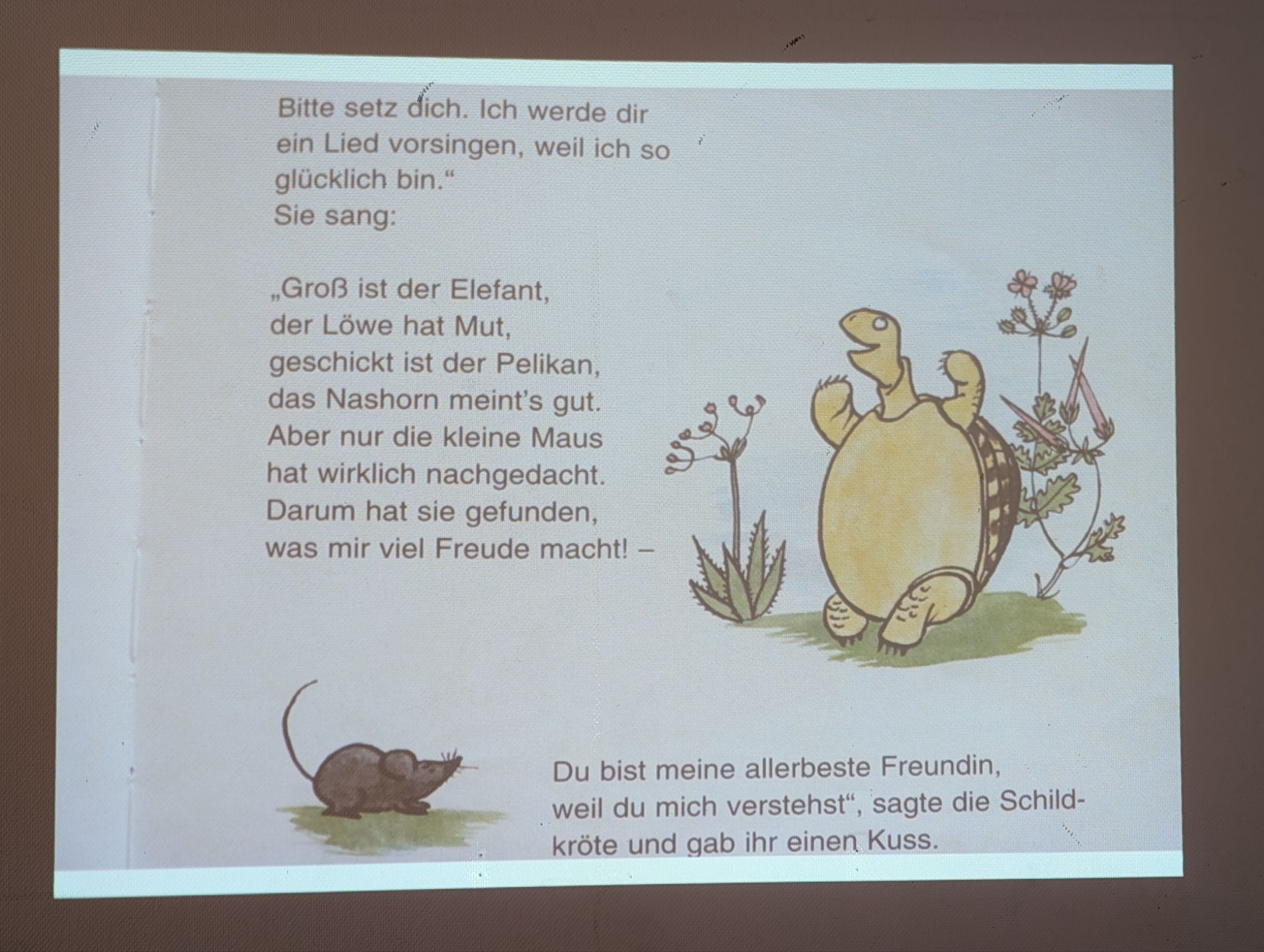 Wir pausieren das Thema Fasching für einen Tag und stimmen uns mit einem Bilderbuchkino auf den morgigen Geburtstag ein. Wir schauen uns das Buch “Die Schildkröte hat Geburtstag” an, welches von Wünschen und Freundschaft handelt. Was macht Freundschaft aus und was ist bei Geschenken wichtig? All das wird in diesem Buch geklärt.