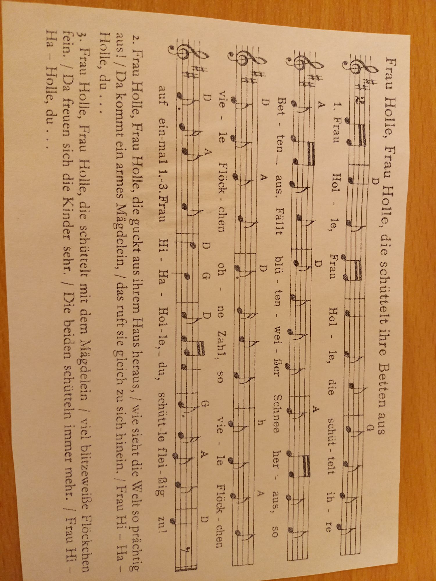 Außerdem erzählen wir das Märchen von “Frau Holle ” und hören das Lied dazu.