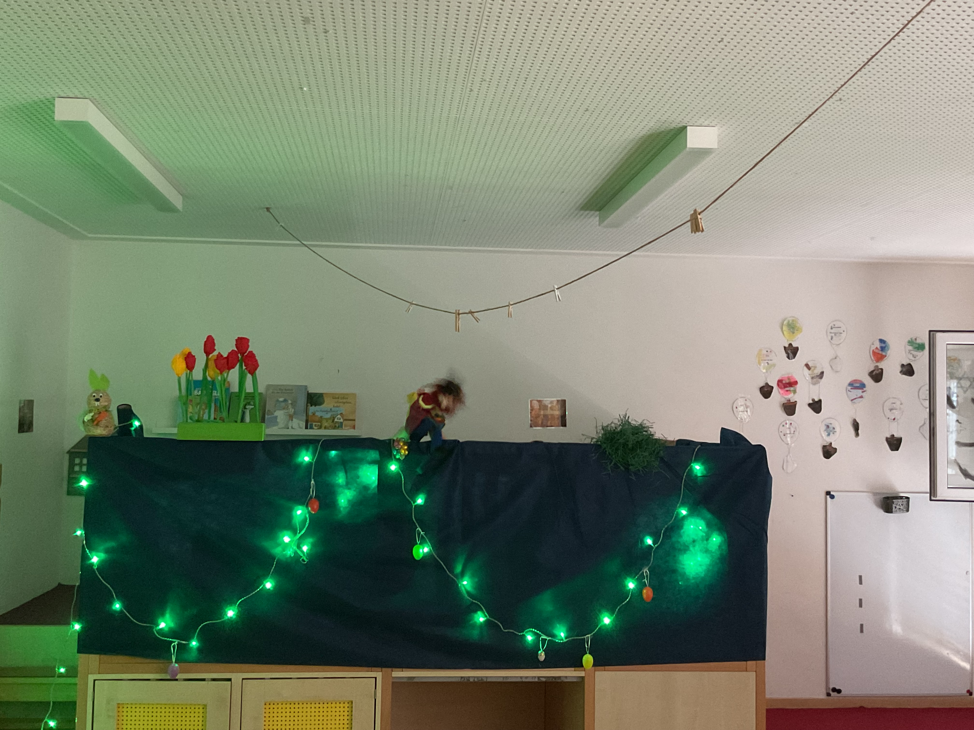 Im Rahmen der Osterzeit haben wir im Kindergarten verschiedene Angebote für die Kinder organisiert. Heute durften die Kinder zunächst ein Oster-Puppentheater erleben. Im Anschluss wurden sie selbst kreativ und haben eigenständig Ostereier sowie einen Osterhasen gemalt.