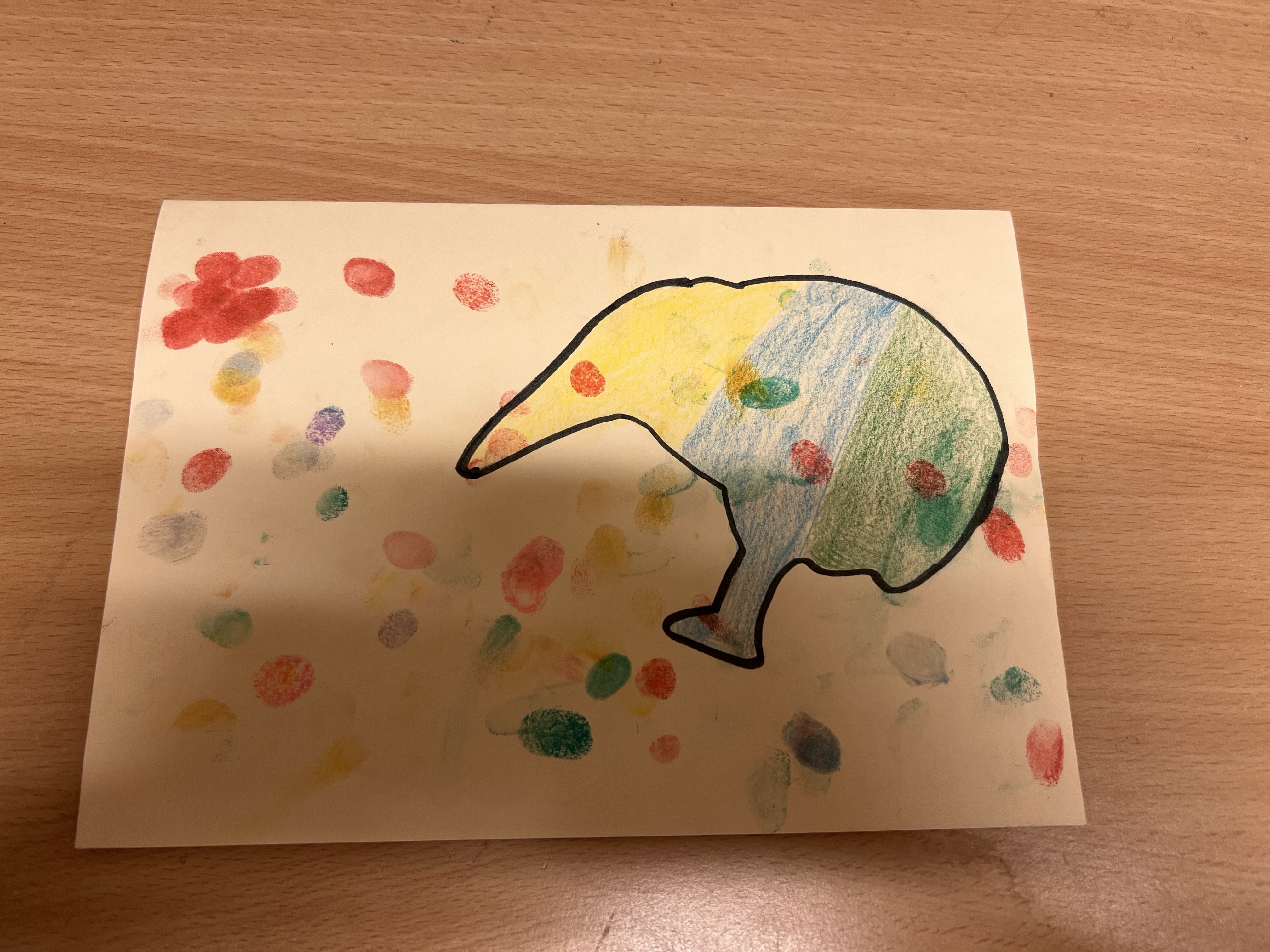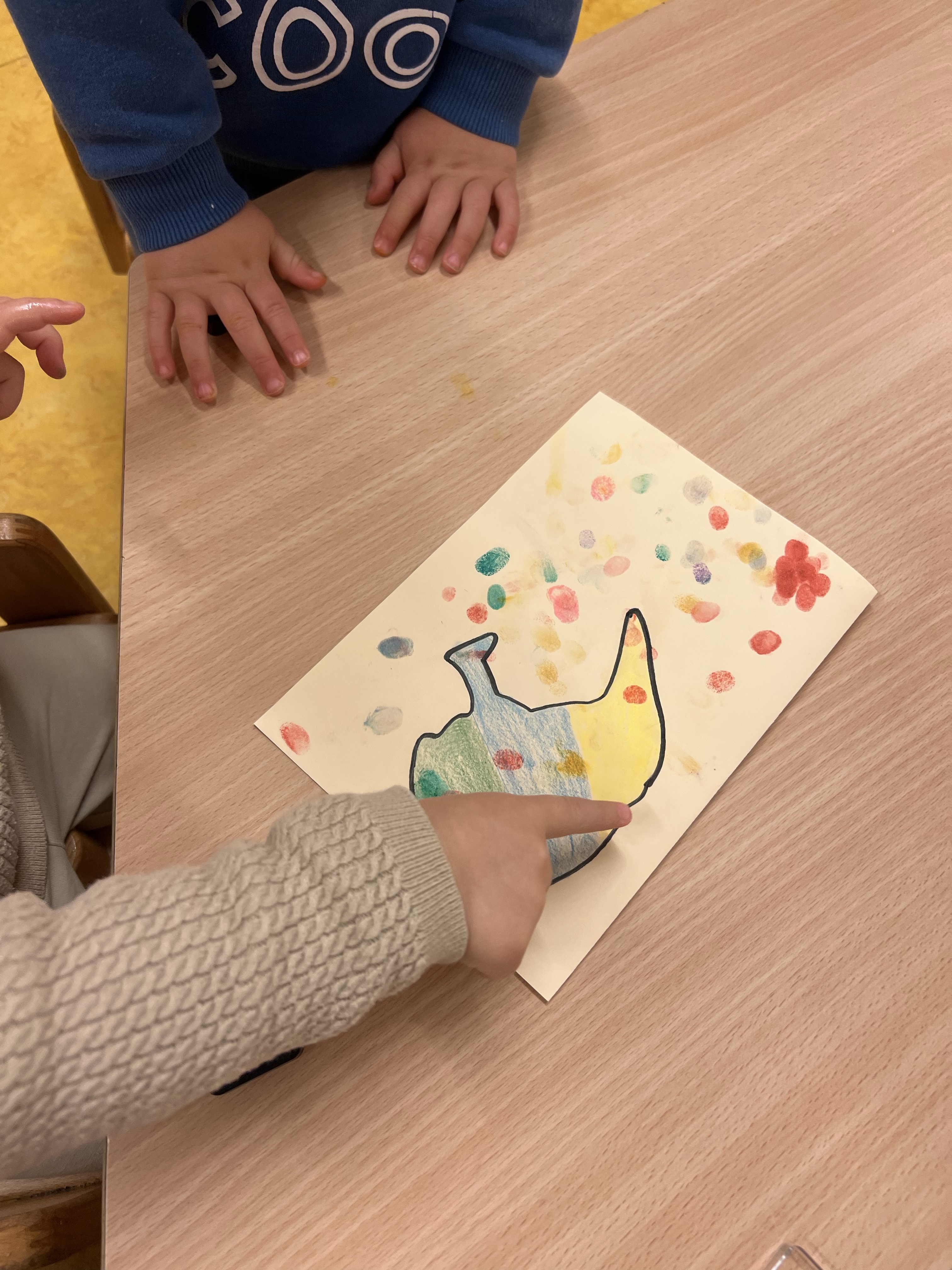 Doch es hieß auch Abschied nehmen. Zum Ende der Woche hin, verabschiedeten wir uns von Bernadette. Die letzten Wochen unterstützte sie, spielte mit und tröstete uns. Nun wird sie bald in einen neuen Kindergarten gehen. Zum Abschied bastelten wir ihr eine Karte und stempelten verschiedene Fingerabdrücke darauf. Wir überreichten ihr in einem Morgenkreis eine kleine Blume 🌼 etwas zu naschen und unsere Karte. Wir wünschen ihr alles Gute.